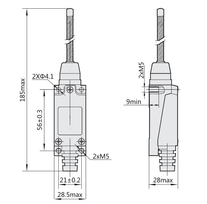 Kích thước và bản vẽ kích thước của Công tắc hành trình CHiNT YBLX-ME / 8101